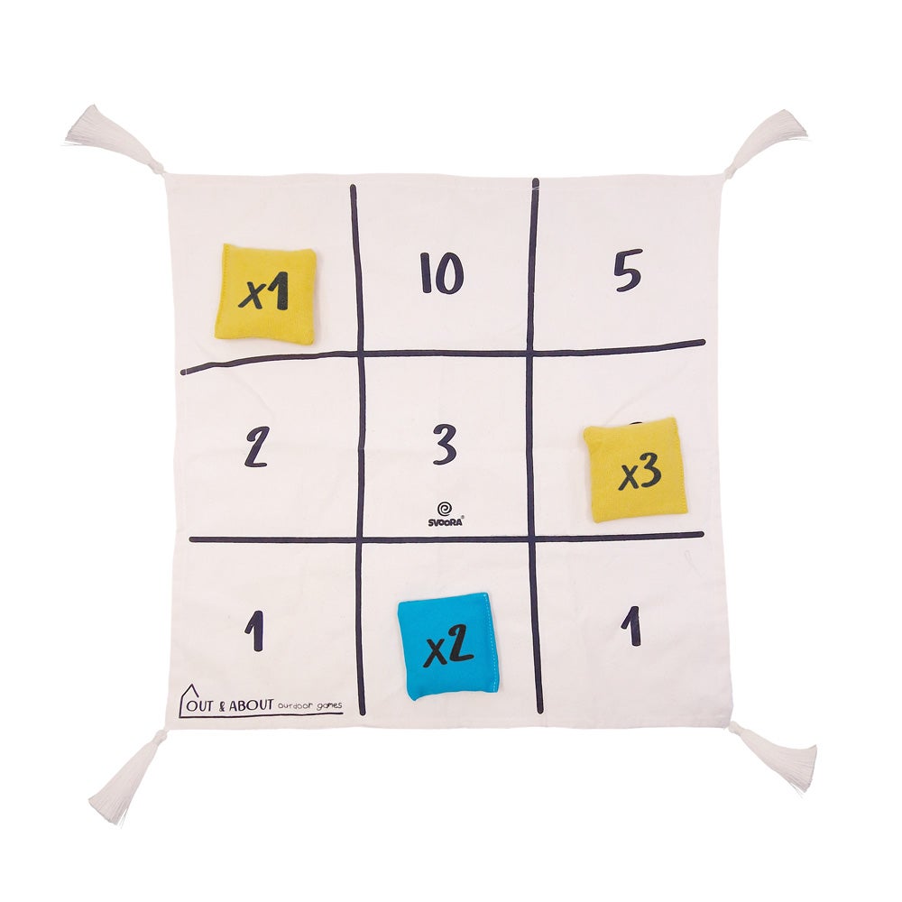 Svoora Hernepussipeli sopii leikkeihin sisälle ja ulos. Kerää pisteitä heittämällä hernepusseja alustalle.